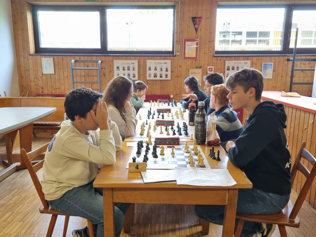 Im zweiten U16-Team punkteten alle Spieler entsprechend ihrer Brettnummer: Karoline holte an Brett 1 einen Punkt, Maximilian W. an Brett 2 zwei Punkte, Niko an Brett 3 drei Punkte und Mazen an Brett 4 vier Punkte. Diese Leistungen reichten für drei Unentschieden und einen Sieg – am Ende bedeutete das 5 Mannschaftspunkte und Platz 6 in der Gesamtwertung.