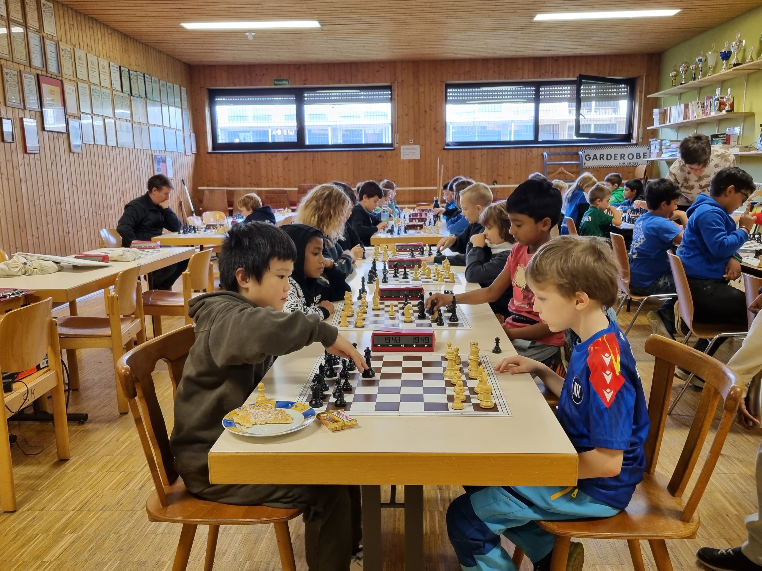 Wegen einer kurzfristigen Absage musste KSF 3 umgestellt werden. Atharva musste Brett 1 übernehmen und sammelte gegen starke Gegner wichtige Erfahrungen. Felix zeigte mit 3 Punkten eine starke Leistung – sogar auf ein Theaterstück verzichtete er dafür. Maxim (2,5 Punkte), Agasty (2) und Szaffi, die ihr erstes Turnier spielte und einen Punkt holte, komplettierten das Team. Mit einem Sieg gegen KSF 4 und einem Remis gegen Bruchsal waren 3 Mannschaftspunkte ein solides Ergebnis.