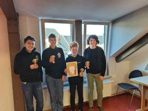 Maxi hatte sich sehr gut auf seinen Gegner vorbereitet und dieser spielte wirklich die gleichen Züge wie einige Runden davor. Damit konnte Maxi das Remis bis zum Ende auch problemlos durchhalten und hatte noch 50 Minuten auf der Uhr während sein Gegner bereits auf Inkrement spielte. Auch die anderen kamen relativ gut durch die Eröffnung. Jakob stand ebenfalls ausgeglichen, Janis leicht besser und Kalle mit +2.5 deutlich auf Gewinn. Da wuchs die Hoffnung bei uns Betreuern.