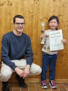 Die U8 war fast komplett in KSF-Hand und auch als erste fertig, da sie nur am Samstag spielten. Hier wurde Benjamin Slavutsky mit 4 aus 4 Punkten Bezirksmeister und Abigail Tan Jerome wurde mit Platz 2 das beste Mädchen.