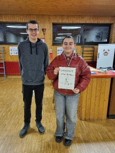 In der U16 wurde es ein spannendes Duell zwischen dem Favoriten Levin Uvar vom SC Untergrombach und unseren KSFlern Maximilian Müller, Jakob Ensslen, Janis Belenki und Kalle Maier. Am Ende konnte sich Maximilian mit 5 von 5 Punkten durchsetzen und wurde Bezirksmeister. Er hatte jedoch etwas Schützenhilfe von Jakob, der in Runde 3 ein Remis gegen Levin holte und Maximilian damit das direkte Duell gegen Levin ersparte.