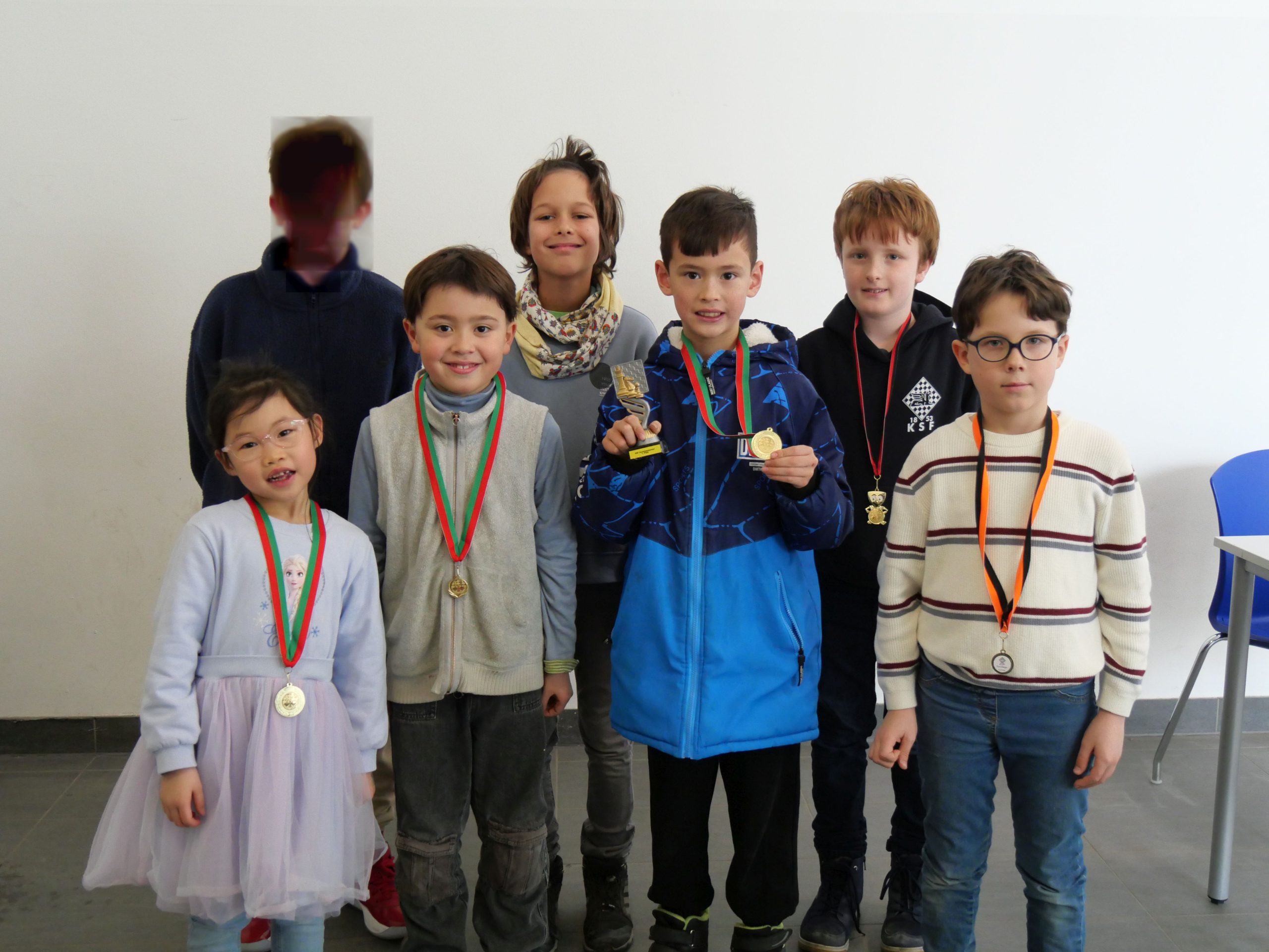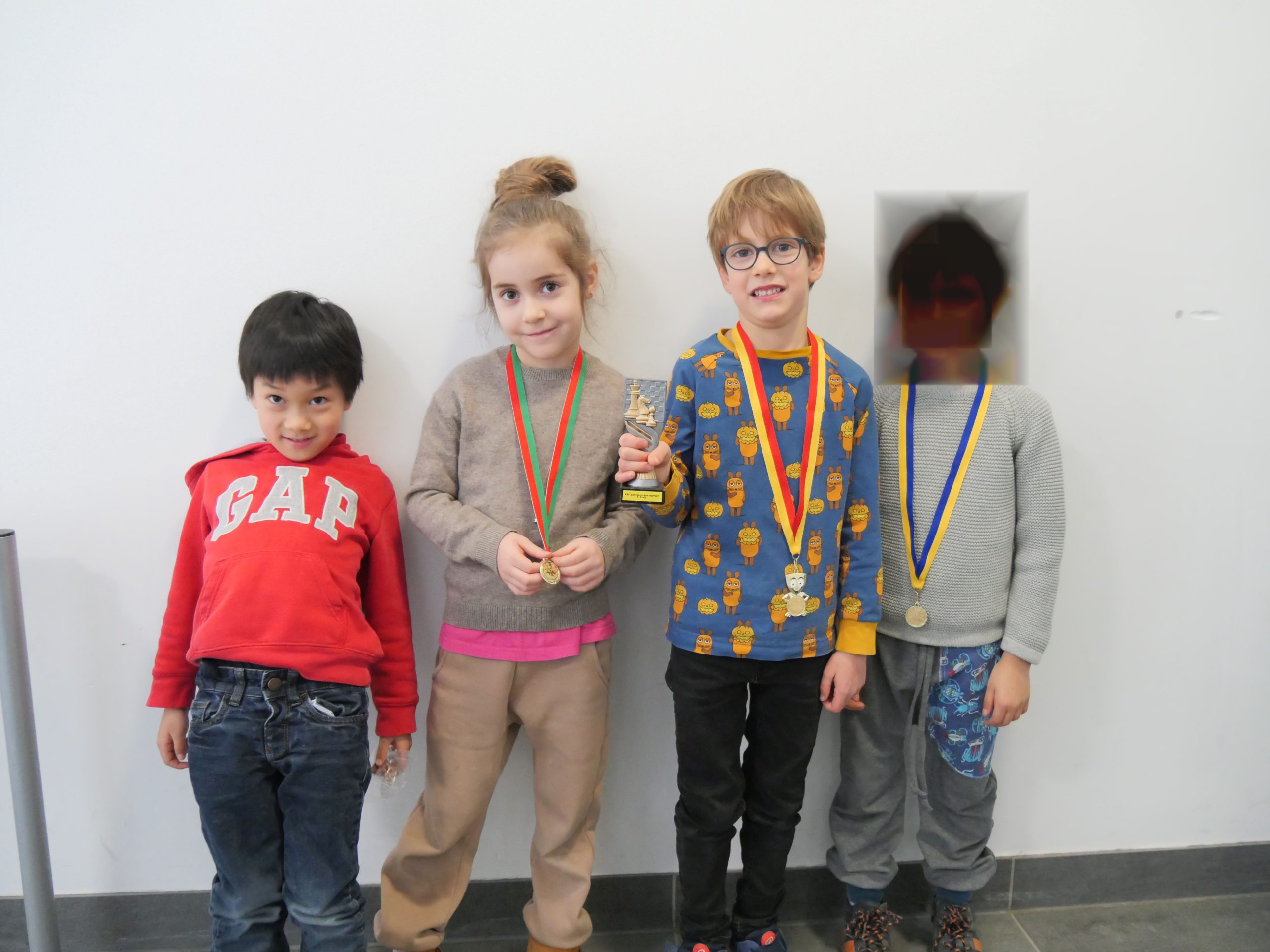 Emil gewann zwei Partien und belegte damit Platz 2. Anna spielte heute ihr allererstes Turnier, erreichte Platz 3 und war mächtig stolz auf ihre Medaille. Alex war der jüngste Teilnehmer im Feld. Zwar reichte es noch nicht zu einem ganzen Punkt, doch im Vergleich zum Turnier im November hat er enorme Fortschritte gemacht und sehr gute Partien gespielt.