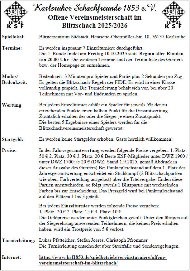 Die besten 5 Ergebnisse eines Spielers werden für die Blitzschachvereinsmeisterschaft gewertet.